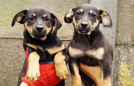 Od lewej Tedi (większy) i Lilo (mniejszy) to 2-miesięczni bracia znalezieni razem z matką Netką (ok.11-miesięczną sunieczką) na polu.