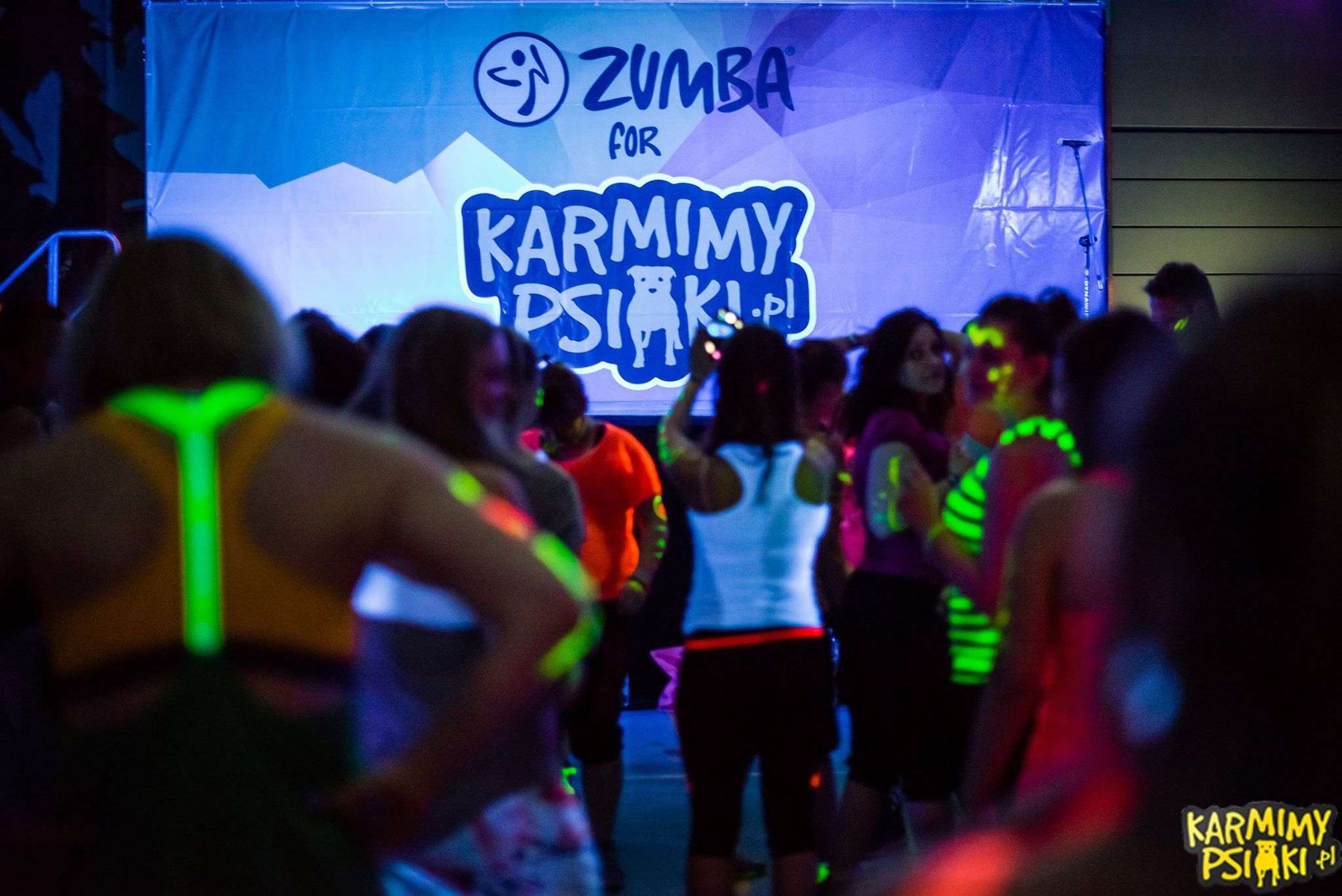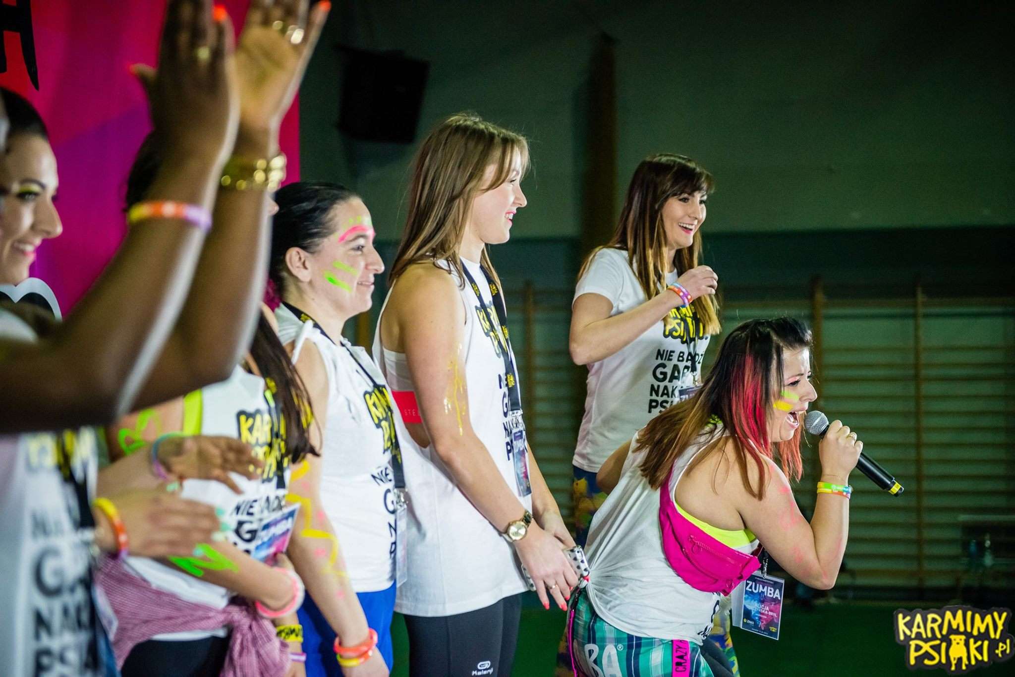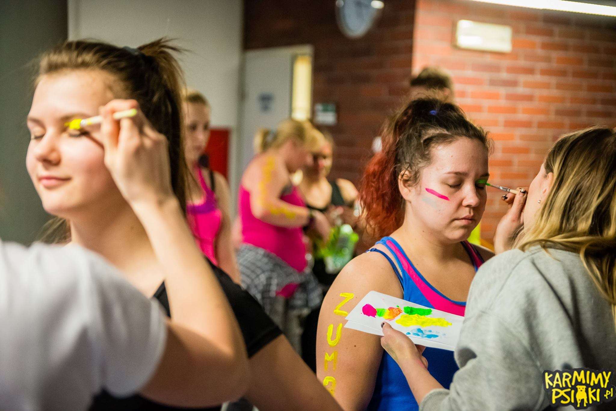 Kiedy wszyscy już się pomalowali nastał czas oczekiwania na start. To było coś wspaniałego! Każdy czuł w powietrzu energię, która już za chwilę miała eksplodować! I wiecie co? Tak się właśnie stało! Wystarczyło tylko, aby instruktorzy weszli na scenę i już w pierwszej sekundzie nastąpił prawdziwy wybuch! Wprost magiczne przeżycie! Wspominając ten wieczór od razu zaczynamy mieć gęsią skórkę! Każdy z Zumbowiczów zachwycał nas na nowo ogromem radości i ciepła. Było wspaniale i naprawdę lepiej nie mogliśmy sobie tego wymarzyć! Tak właśnie zaczęło się 3-godzinne zumbowe szaleństwo! Wszyscy tańczyli przez cały ten czas z szerokimi uśmiechami na twarzach dając z siebie wszystko dla czworonogów.
