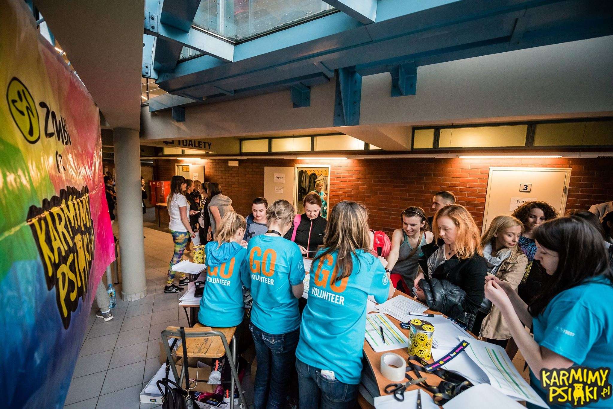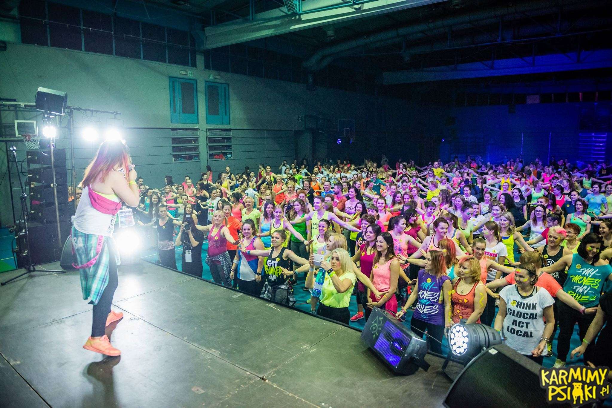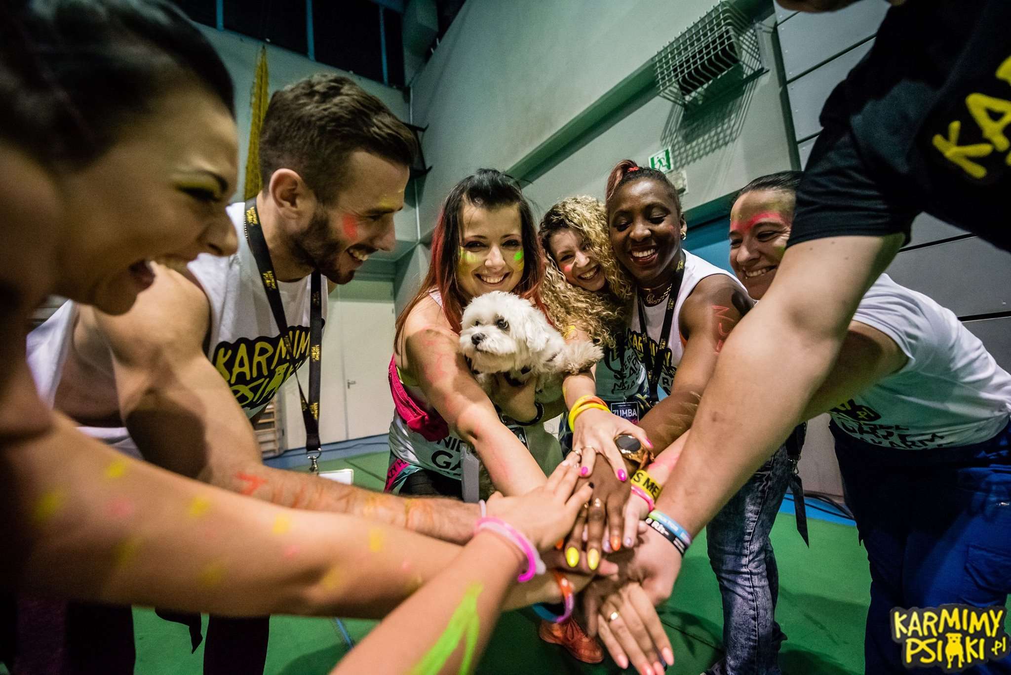 Kiedy wszyscy już się pomalowali nastał czas oczekiwania na start. To było coś wspaniałego! Każdy czuł w powietrzu energię, która już za chwilę miała eksplodować! I wiecie co? Tak się właśnie stało! Wystarczyło tylko, aby instruktorzy weszli na scenę i już w pierwszej sekundzie nastąpił prawdziwy wybuch! Wprost magiczne przeżycie! Wspominając ten wieczór od razu zaczynamy mieć gęsią skórkę! Każdy z Zumbowiczów zachwycał nas na nowo ogromem radości i ciepła. Było wspaniale i naprawdę lepiej nie mogliśmy sobie tego wymarzyć! Tak właśnie zaczęło się 3-godzinne zumbowe szaleństwo! Wszyscy tańczyli przez cały ten czas z szerokimi uśmiechami na twarzach dając z siebie wszystko dla czworonogów.