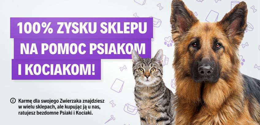 Zakupy dla swojego pupila możesz zrobić w wielu sklepach, ale tylko w tym, kupując – pomagasz bezdomnym Psiakom i Kociakom.