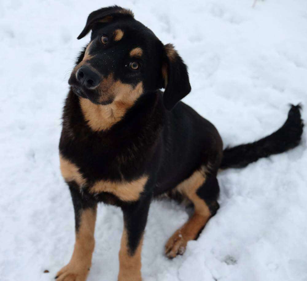 Płomień to jeszcze psie dziecko. Ma zaledwie 5 miesięcy. Docelowo będzie ok. 30 kg psiakiem.
