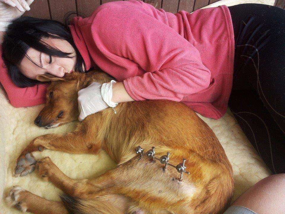 Pierwsza noc w klinice była najgorsza – piesek przez krwotok wewnętrzny dostał wstrząsu. Na drugi dzień lekarze ustabilizowali Alusia, a kilka dni później okazało się, że psiak dostał porażenia splotu barkowego i trzeba amputować przednią kończynę…